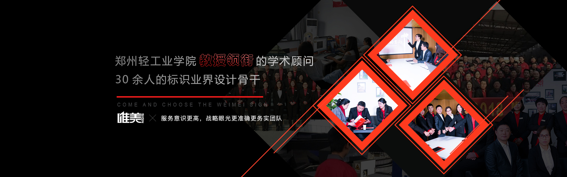 鄭州唯美標識設計制作有限公司是一家集標識系統開發、設計、制作、安裝、售后服務于一體的專業化標識公司。 13年專注標識行業定制服務,已成為地產住宅、商業廣場 、商辦公務、醫院系統、學校文化、工業園區、旅游景區、酒店餐飲、銀行金融等多個領域的提供標識系統解決方案公司。